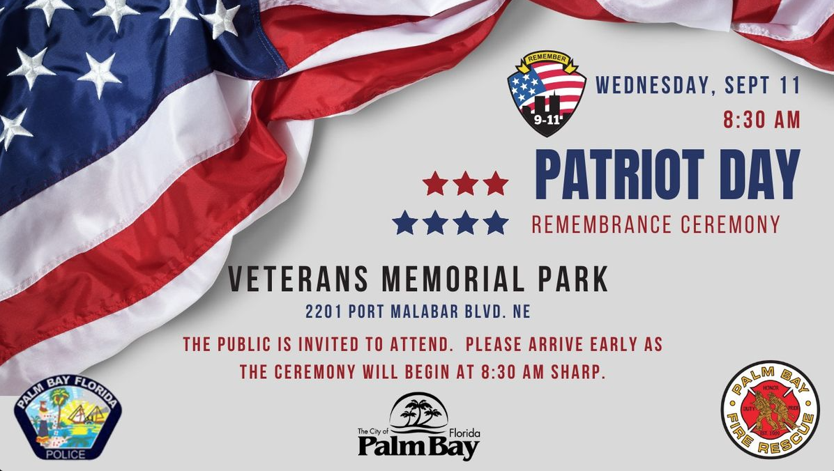 Palm Bay, FL – The City of Palm Bay is set to host its annual Patriot Day Remembrance Ceremony on Wednesday, September 11th, at Veterans Memorial Park. The ceremony, which starts at 8:30 a.m. sharp, will honor the lives lost and the heroism displayed during the tragic events of September 11, 2001.