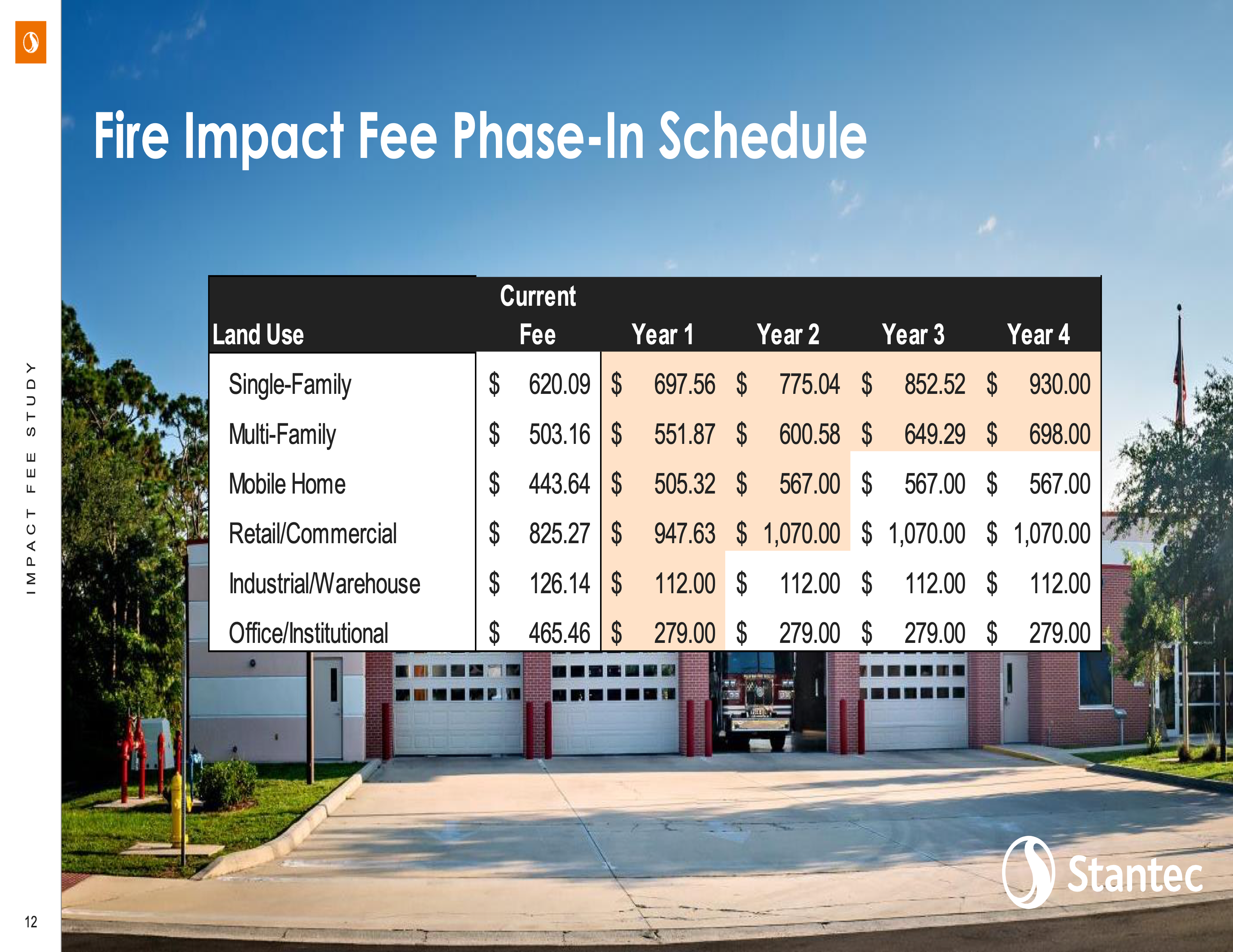 The upcoming presentation by Peter Napoli from Stantec will shed light on the proposed changes to the Police and Fire Impact Fees. The last update to these fees was in 2019, and since then, the US ENR - CCI Index, which measures construction costs, has risen by 20%. This indicates a need for adjustment in fees to keep up with the increasing costs of infrastructure.