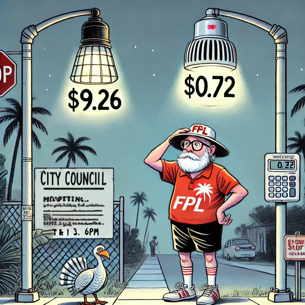 Jason Tanko, CEO of Tanko Lighting, will present a streetlighting feasibility study to the council, exploring options for the city to take ownership of its streetlights from Florida Power & Light (FPL).