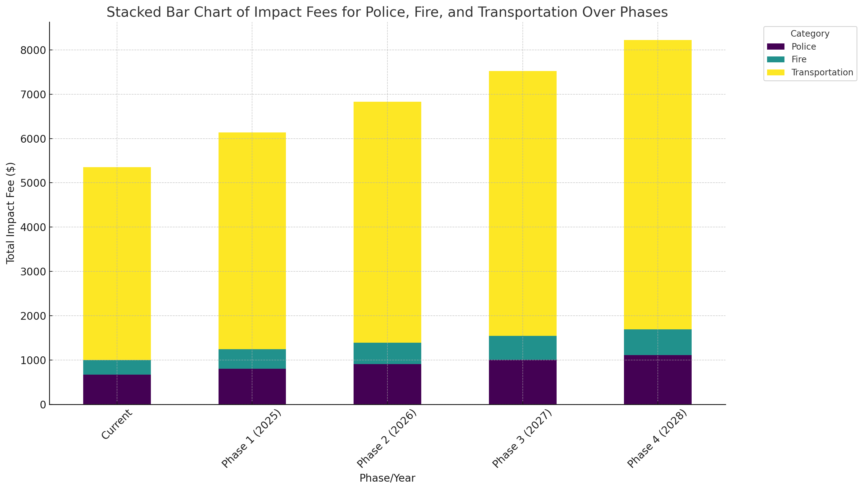 This discussion follows presentations from Stantec and Benesch, consultants hired by the city to conduct impact fee studies. The proposed increases reflect: