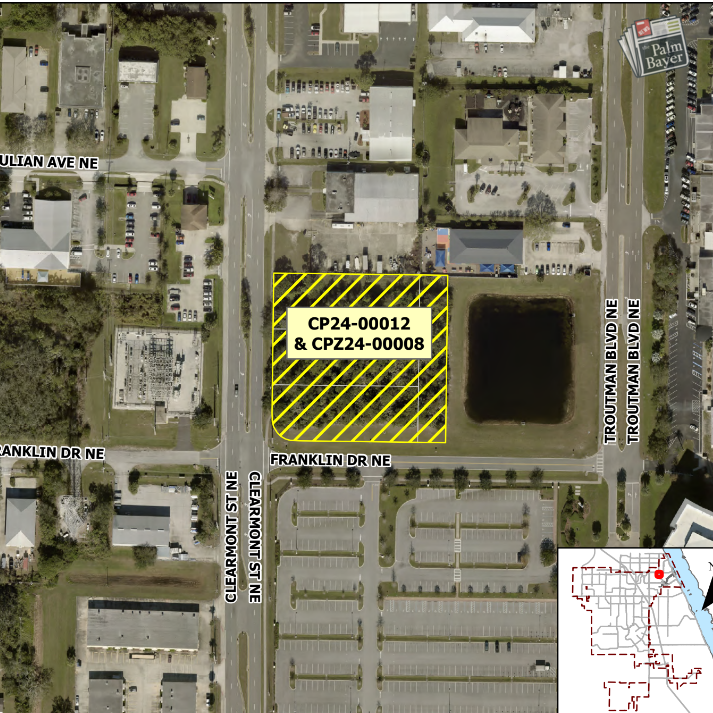A 2.14-acre parcel located at the northeast corner of Clearmont Street and Franklin Drive may be rezoned from Community Commercial (CC) to Light Industrial (LI). This rezoning would enable the development of flex space for light industrial uses, supporting surrounding businesses like L3Harris. The site is currently vacant and surrounded by industrial zoning to the north, west, and south, making this change a logical extension of the area’s existing industrial character. The Planning and Zoning Board has already recommended approval of this rezoning request, citing consistency with the city’s Comprehensive Plan objective to expand its industrial market. A final vote will be held during the council meeting.